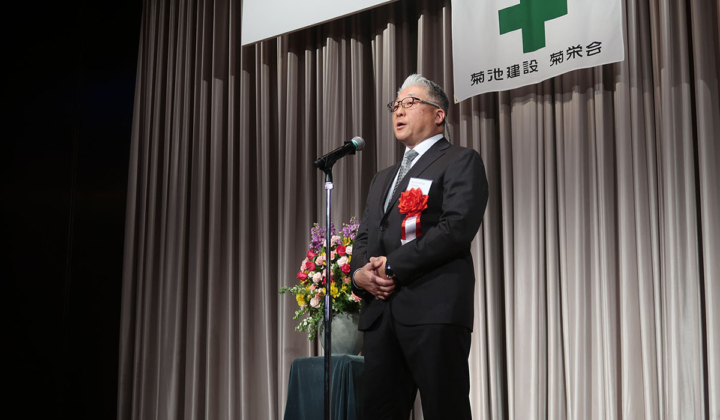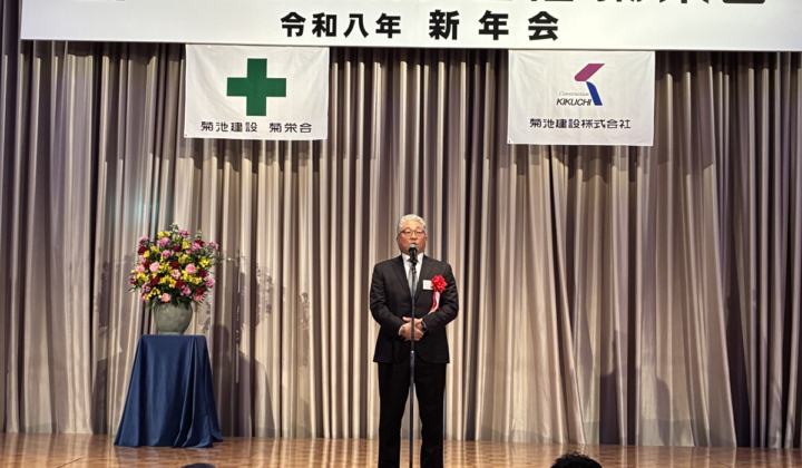 本年も新年会を開催し、参加者全員で新たな一年のスタートを迎えることができました。開会前には、新たな取り組み「キクレボ」について……