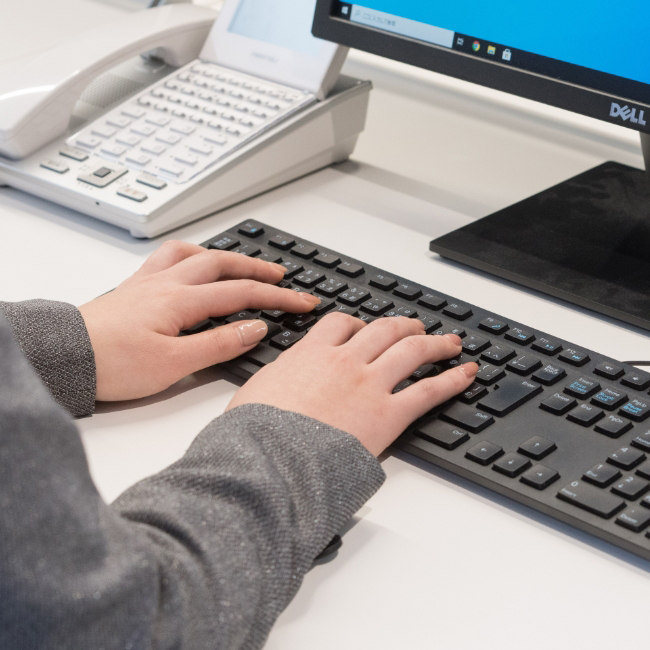 総務・人事の仕事内容は多岐にわたり、資料の作成や来客・電話対応、採用関係など多くの業務に携わっています。様々な仕事を任せてもらえる事や、周囲の方々と直接コミュニケーションを取りながら仕事を進められるところにやりがいを感じています。
