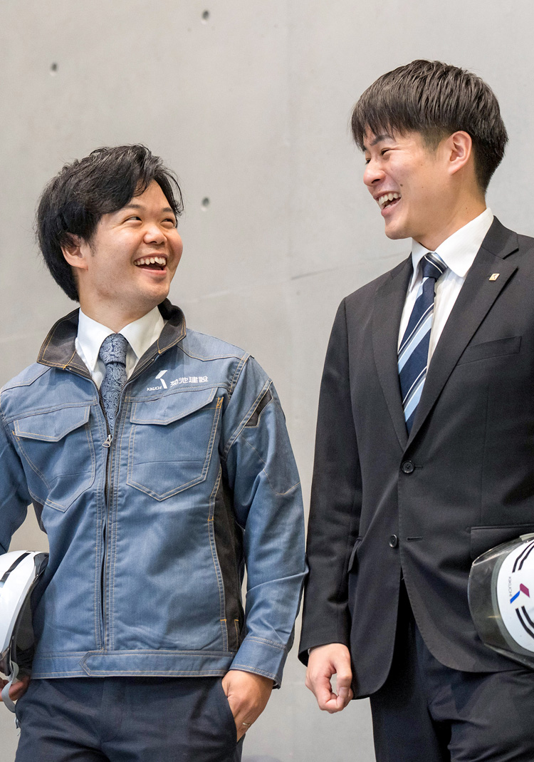 その場面の一つが、週の初めに開かれる管理職会議。前の週に報告されたあらゆる事象を公開し、技術とサポートの両面から問題点をすり合わせ、情報と意識を社内で一体化させています。部署ごとの専門分野はさまざまでも、目指す方向は同じ「お客さまの満足」であるからこその、菊池建設の姿勢が試される場でもあります。